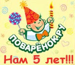 За 5 лет мы стали лидерами среди кулинарных сайтов - каждый день к нам приходит более 350 тысяч человек, зарегистрировалось 200 тысяч поварят. В месяц на Поварёнок.ру заходит более 7 миллионов пользователей! На сайте вы можете найти 60 тысяч рецептов разнообразных блюд, которые были приготовлены и опробованы самими авторами. Нельзя не отметить и тот факт, что качество описания и оформления рецептов постоянно улучшается. Поварёнок - стал самым посещаемым кулинарным порталом рунета!