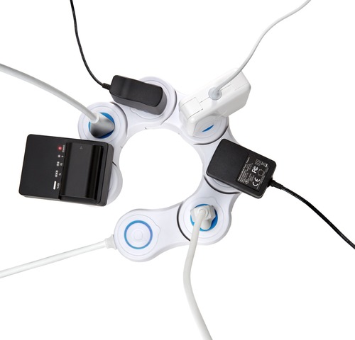 Конструкция Pivot Power позволяет каждому отдельному гнезду блока розеток двигаться как на шарнирах. Поэтому Вы можете свернуть Pivot Power в форме круга, полукруга или зигзагом, — словом, так, как удобнее Вам. Оберните Pivot Power вокруг ножки стола или разместите полукругом в углу помещения, и он займет минимальное пространство и не будет привлекать к себе лишнего внимания. Изворотливость Pivot Power позволяет не только подбирать наиболее удобную форму для его размещения в комнате. Также решается проблема «бутафорских» розеток. Загляните под стол: наверняка минимум одно гнездо в Вашем сетевом фильтре пустует, а зарядку от телефона при этом вставить некуда. Знакомая проблема? А все от того, что какой-то крупногабаритный адаптер занимает слишком много места и закрывает доступ к соседнему разъему. Благодаря уникальной гибкой конструкции Pivot Power в нем хватит места даже самым большим адаптерам!