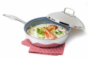 Сотейник от Greenpan с крышкой 28 см и набор аксессуаров для кухни от Frybest (Ложка для спагетти, Шумовка, Ложка для салата, Ложка большая, Ложка для переворачивания)