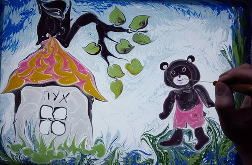 Историю, которую расскажут со сцены артисты, украсит уникальный визуальный ряд в технике эбру, который будет рождаться на глазах у зрителя. Это древняя восточная техника создания изображения на поверхности воды с помощью красок, кисти и шила: капли краски на воде, пребывая в движении, образуют удивительный сиюминутный рисунок.