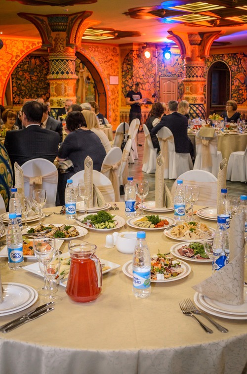 А светлый банкетный зал «Галерея» с двумя рядами сводчатых окон украшенных нежным орнаментом — просто идеальное место для проведения праздничного банкета.