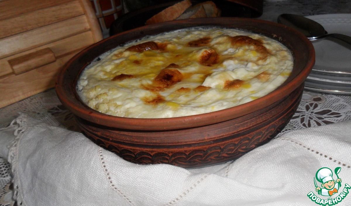 Но вот с корочкой, изюминкой рецепта, мне не совсем понятно, у меня на поверхности поджарился тоненький воздушный омлетик с выраженным вкусом яйца. Наташа же говорит, что должно получится что-то типа молочной пенки, нежная, сливочная, лишь слегка выдавать яйцо... Не знаю, что не так, попробую в следующий раз горшочек подольше подержать в духовке на жару, может, будет лучше, а может, просто не мой рецепт... Пшенную кашу очень люблю и часто готовлю, как научила светлой памяти тетя Маня, заваривая взбитыми с сахаром яйцами.