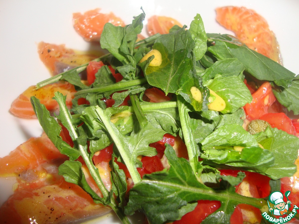 «Карпаччо из лосося с рукколой и горчичным соусом»