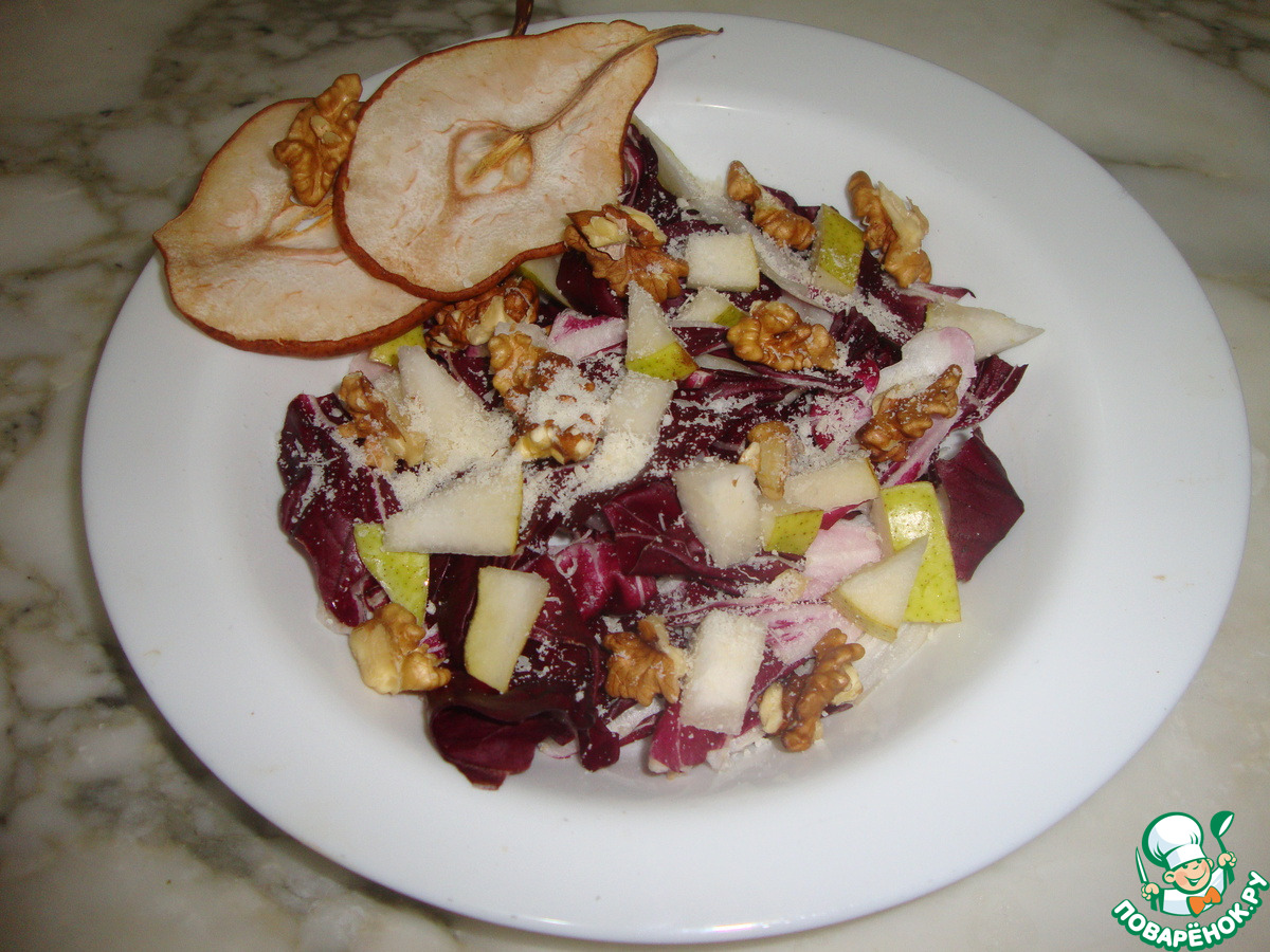 «Салат из радиччо с грушевыми чипсами, орехами и пармезаном»