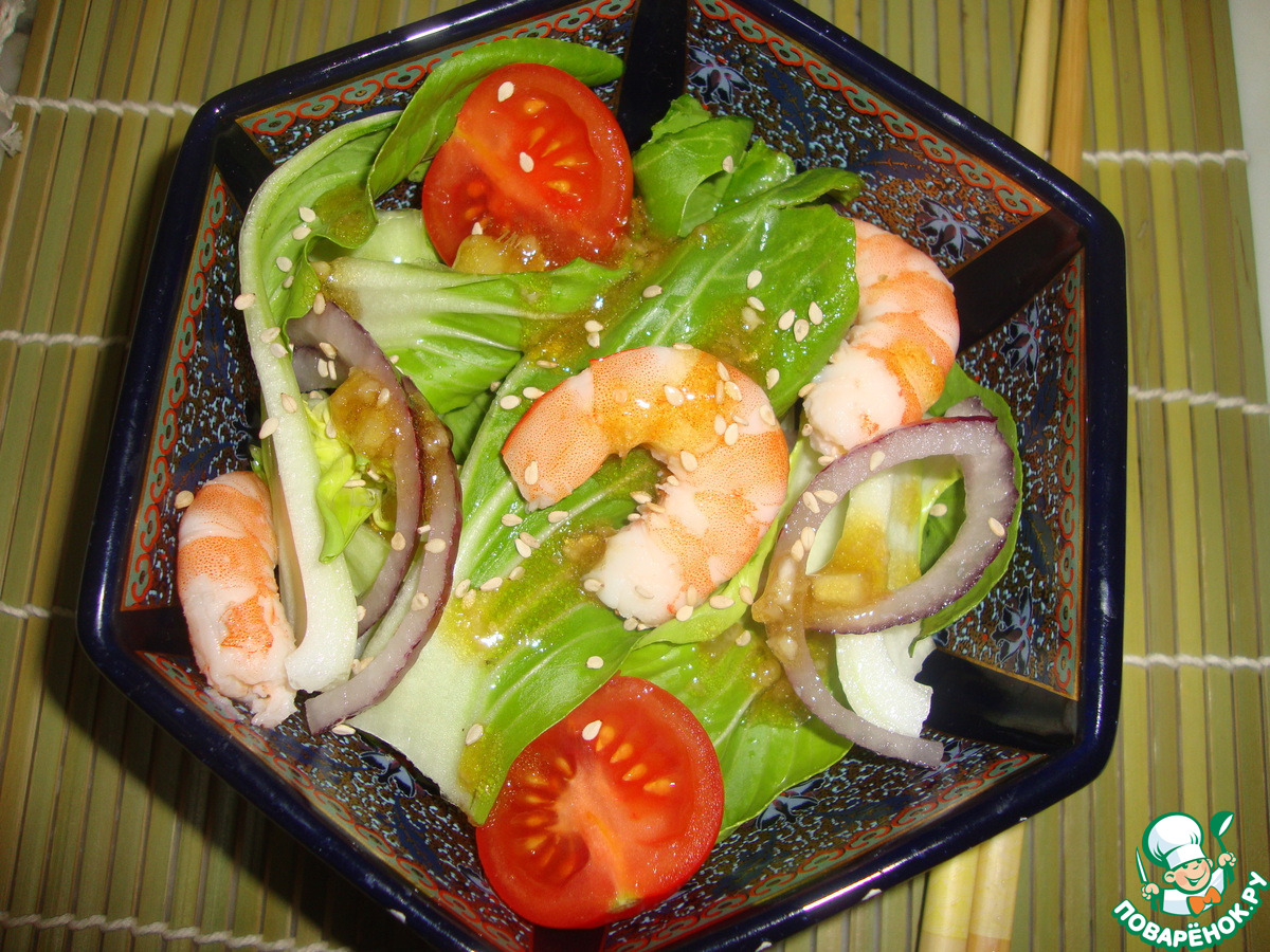 «Японский салат пак-чой с креветками, кунжутом и черри»