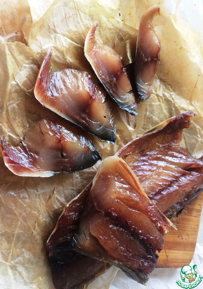 Солю рыбу я давно, а подвяливать стала пару лет как с подачи пользователя нашего же сайта Лены в744нт, у нее незначительное отличие в технологии, получается шикарная так называемая провесная скумбрия. В этом же рецепте меня заинтересовало, главным образом, использование горчицы. Результат, на мой вкус, отличается, это такой - более пивной вариант, беру его в арсенал тоже. Горчица явно не слышна, но некую остроту, пикантность придает точно: не в силах сдержать любопытства, я каждый день отщипывала кусочки на пробу и, признаться, уже собиралась расстраиваться, поскольку явственно ее ощущала. А сегодня - куда что делось, не только я, но и сын, который более тонко чувствует, не различили ее откровенного присутствия, за исключением, повторюсь, некоторой очень легкой пикантности, остринки.