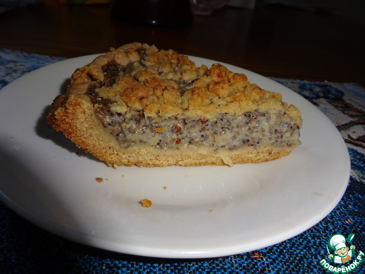 «Маковый пирог со штрейзелем (в тесто вместо яиц полбанана и 1/2 ч.л. льняной муки, разбавленную водой)»