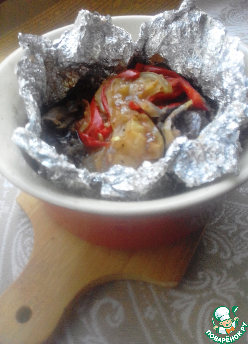 Рецепт для мангала https://www.povarenok.ru/recipes/show/140622/, но я готовила в духовке, час на 200 градусах, сердце стало вполне мягким, за исключением верхней части, где более плотные места и начало крупных сосудов, можно было б еще минуток 10 подержать для полного идеала, в следующий раз учту. А он обязательно будет, потому что хочу еще попробовать по совету Марии springwind492 в комментариях добавить ягод можжевельника, да и вообще, рецепт зацепил - я очень люблю все такое, что загодя можно подготовить да еще и безучастно оставить потом доходить в духовке. Загорелась угостить друзей - сверточки такие интересные, сочные, пикантные, очень-очень ароматные! Я начинки положила гораздо больше, чем по рецепту, сердце в свою первоначальную форму завернуть не удалось, я просто запаковала весь этот стожок в фольгу и уложила в керамическую плошку, о чем не пожалела, но теперь понимаю, что напрасно порезала все тонко, за час готовки овощи и яблоко превратились практически в соус, лучше рубить крупными дольками.