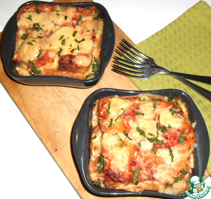 «Запеканка из хлеба и фарша под сметанной заливкой»