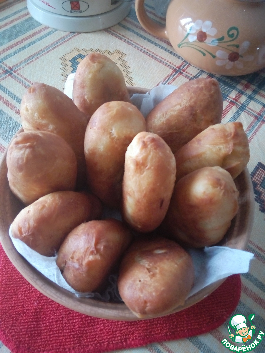 «"Бездрожжевое тесто на кефире", пирожки с рыбой и рисом»