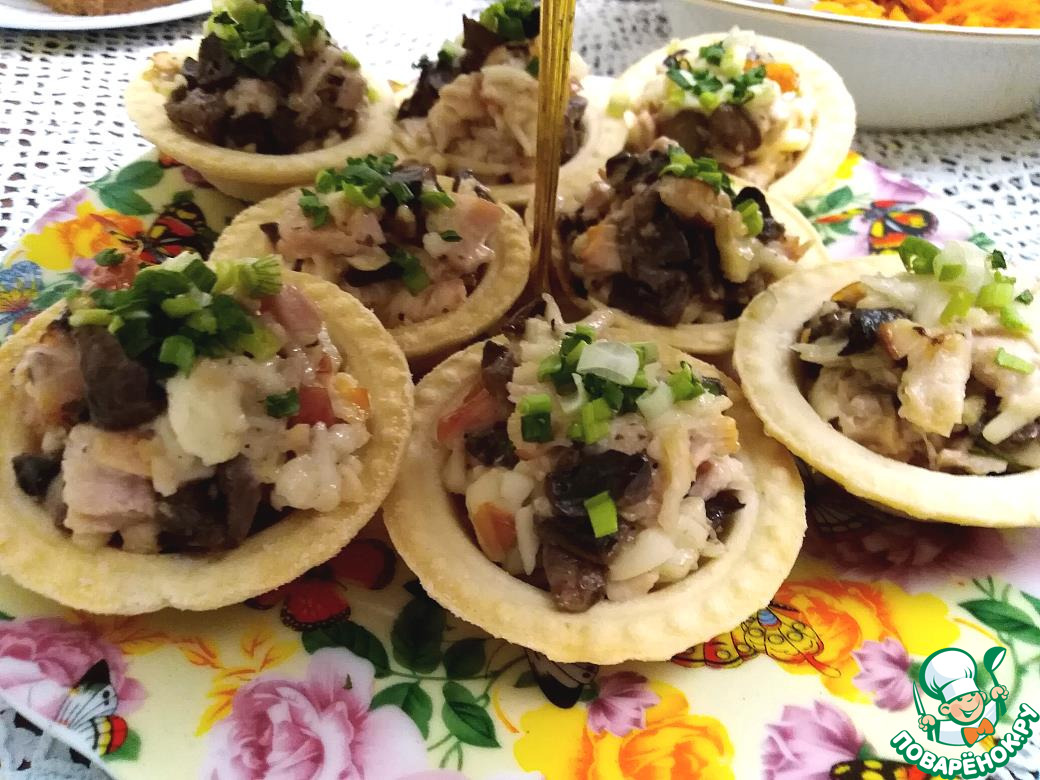 «Тарталетки с копченой курицей и грибами по рецепту katerinavredina2808»