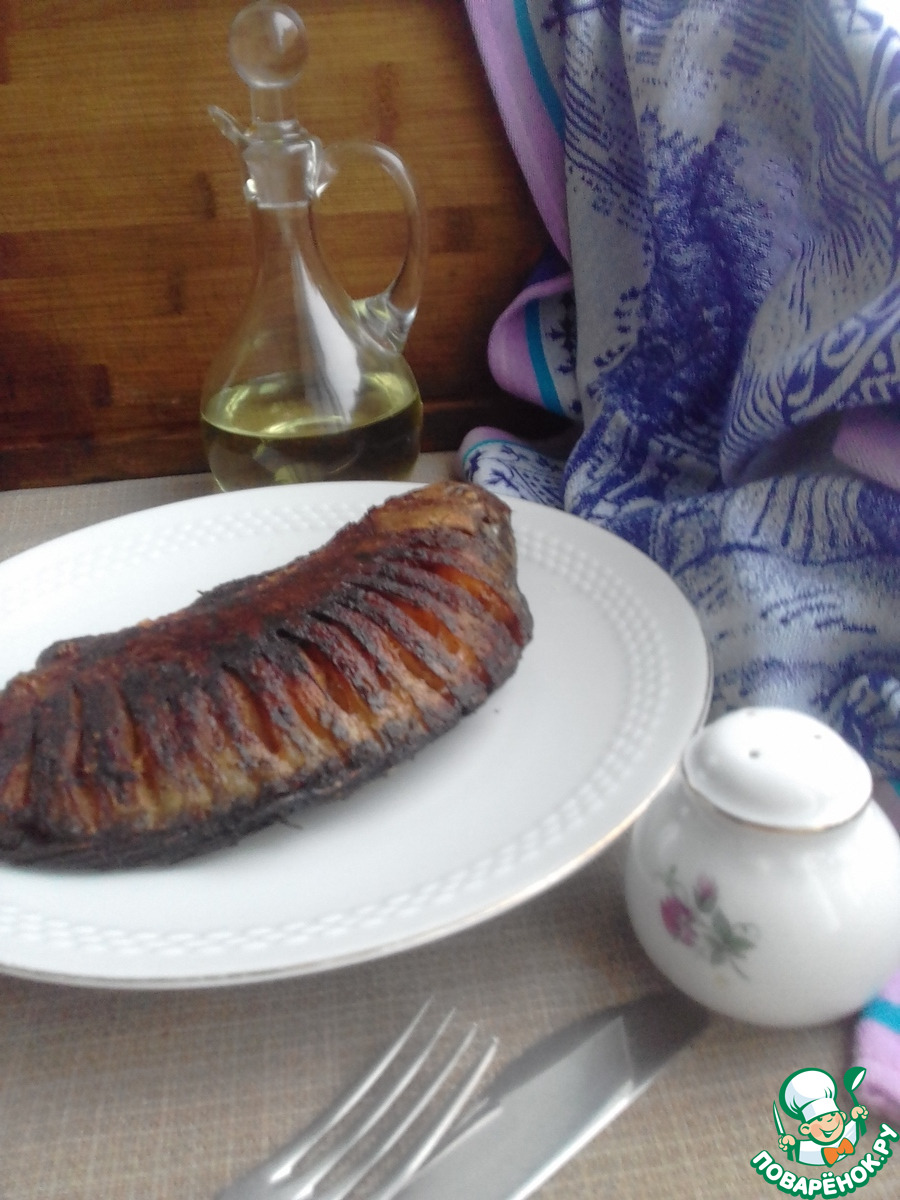 Употребить же сего карася с такой горелой корочкой, даже мне, грешащей вволю и жареным, и жирным, и хрустящим, не доставило удовольствия, и это я еще более приличный бочок сфотографировала.