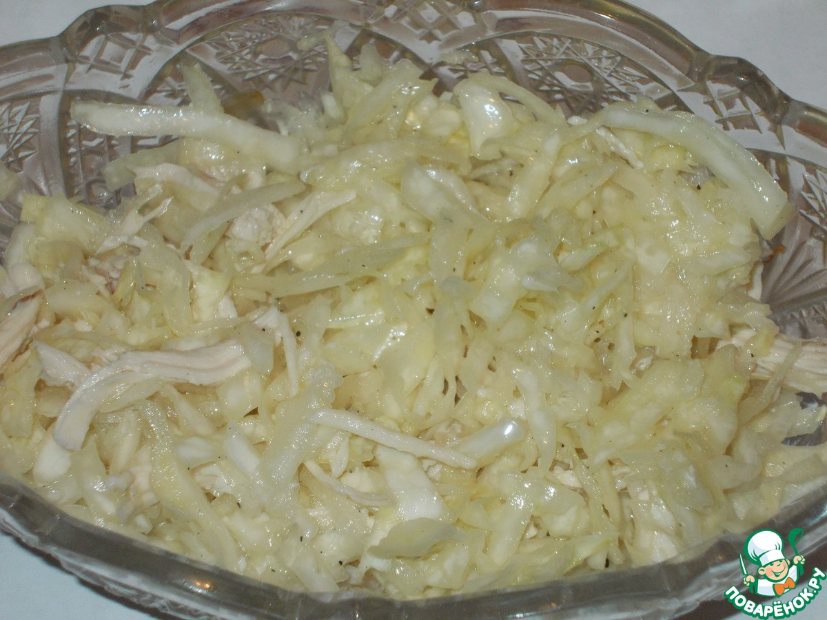 «салат из капусты, запеченой курицы и груши»