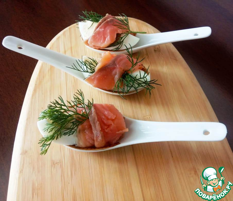 Работа довольно муторная, придется повозиться, но так нарядно смотрится на столе, да и вкусно, я очень люблю. Обычно скалываю шпажкой и еще вместе с укропчиком подкладываю колышек подмороженного масла (когда его можно уже нарезать, как пару спичинок примерно). Рыбу использую любую, какая есть - и копченую, и просто соленую. На фото у меня чуть подвяленная горбуша домашнего посола.