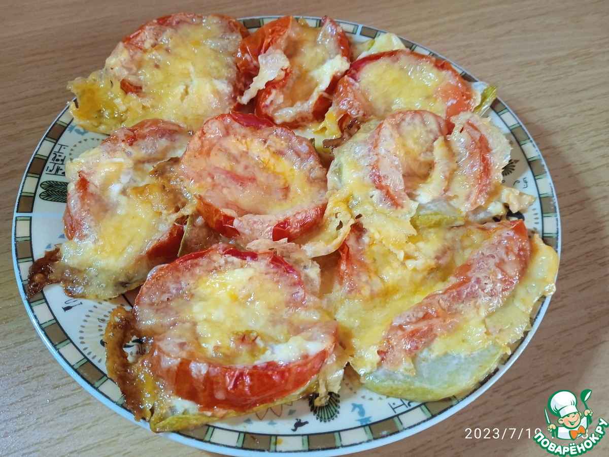 Именно язычками резать кабачок нет необходимости, потом неудобно переносить в тарелку. Пластины лучше разрезать пополам. И сыр, если посыпать сразу, высохнет, пока приготовятся овощи.