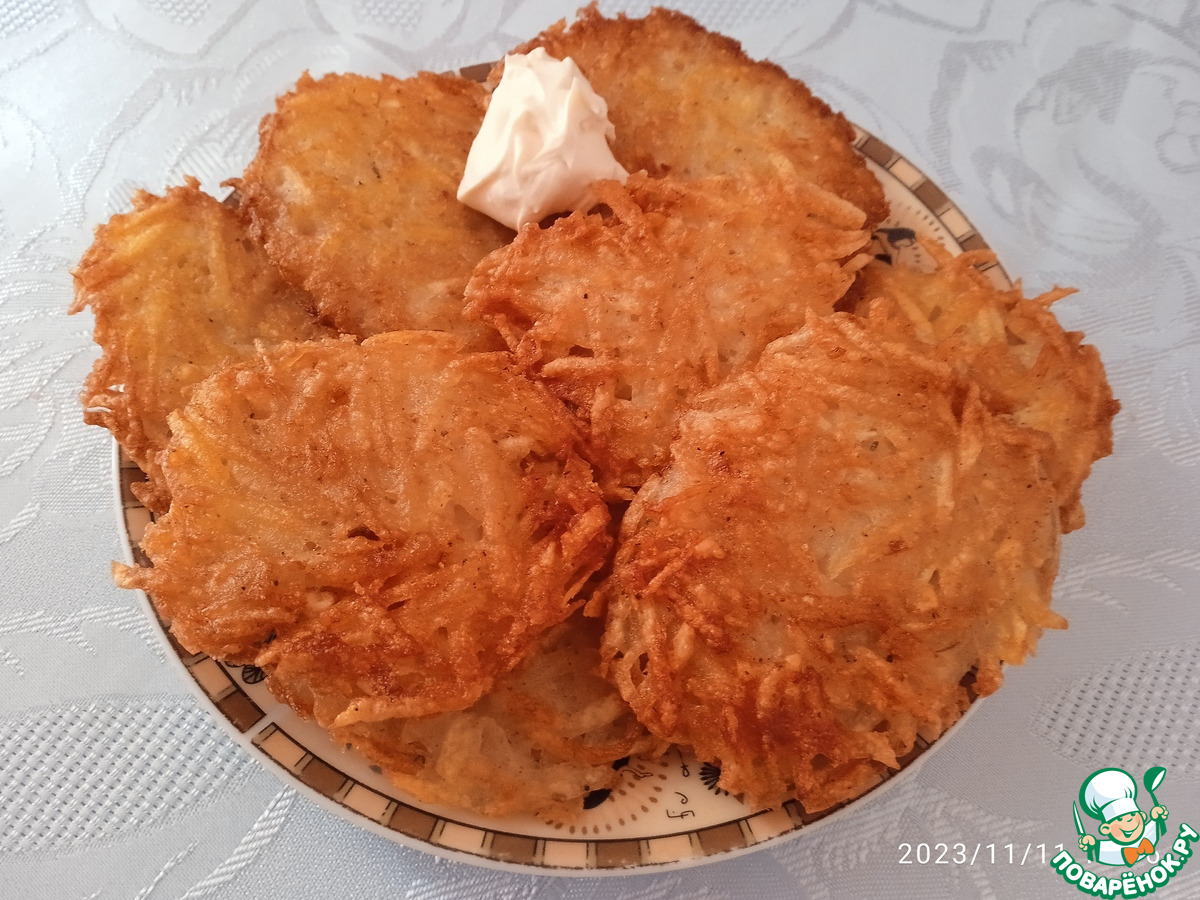 Необычность рецепта в том, что уже натёртый картофель промывается в воде. Это даёт свой результат - боксти хрустящие, легко переворачиваются, не прилипают и не разваливаются, хотя в рецепте нет яиц. Есть варианты с добавлением лука и варёной картошки, можно попробовать. Должно быть ещё вкуснее.