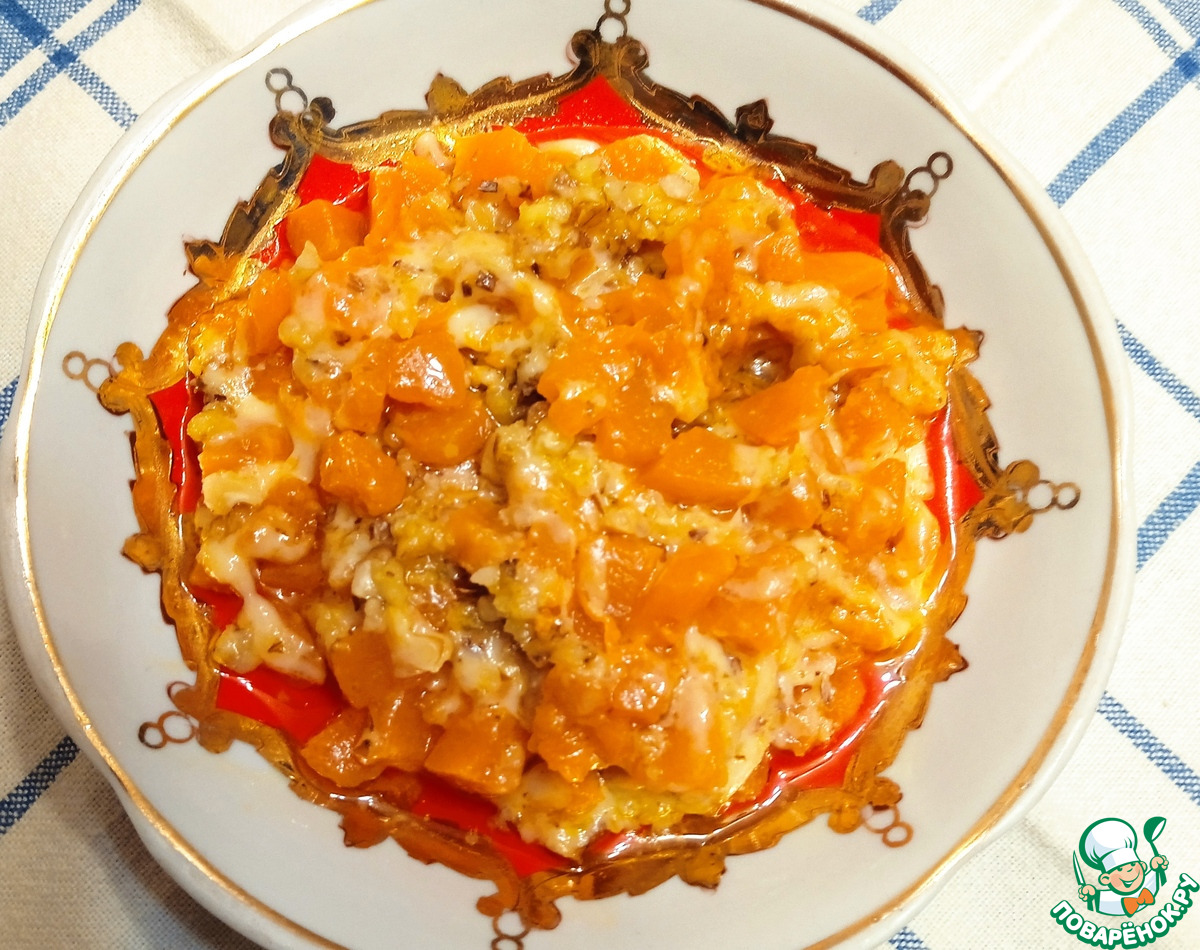 Тыква с сыром и грецкими орехами.