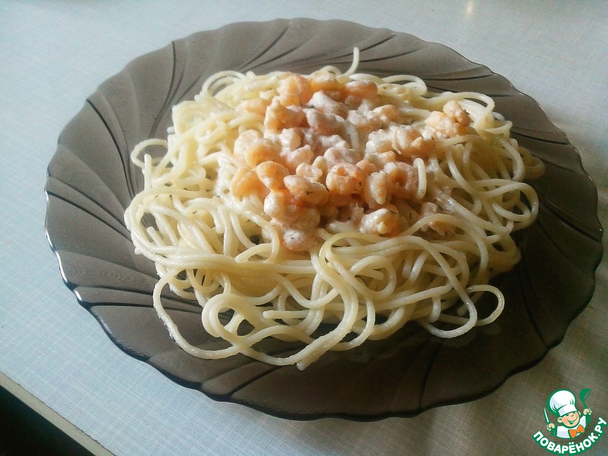«Спагетти с креветками в сливочно-винном соусе»
