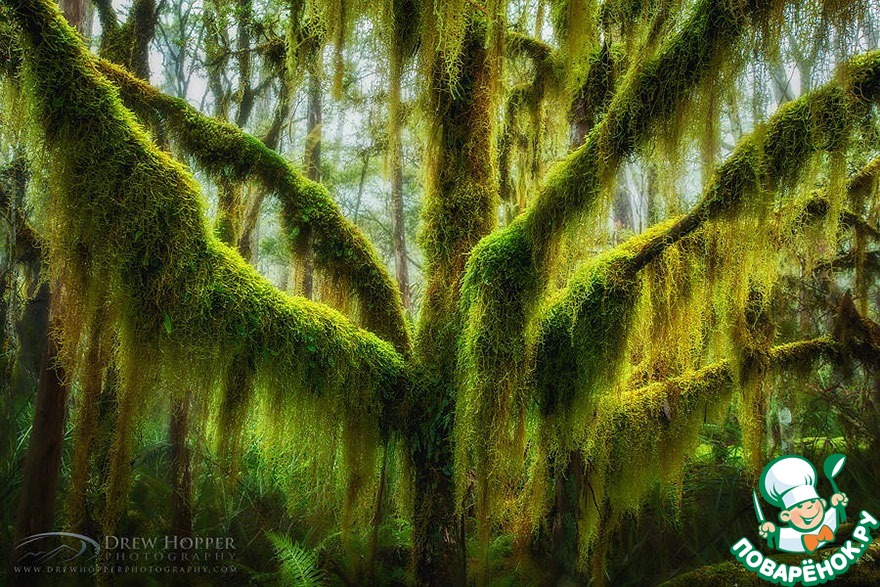 «Антарктический бук, «задрапированный» свисающим мхом, Орегона»