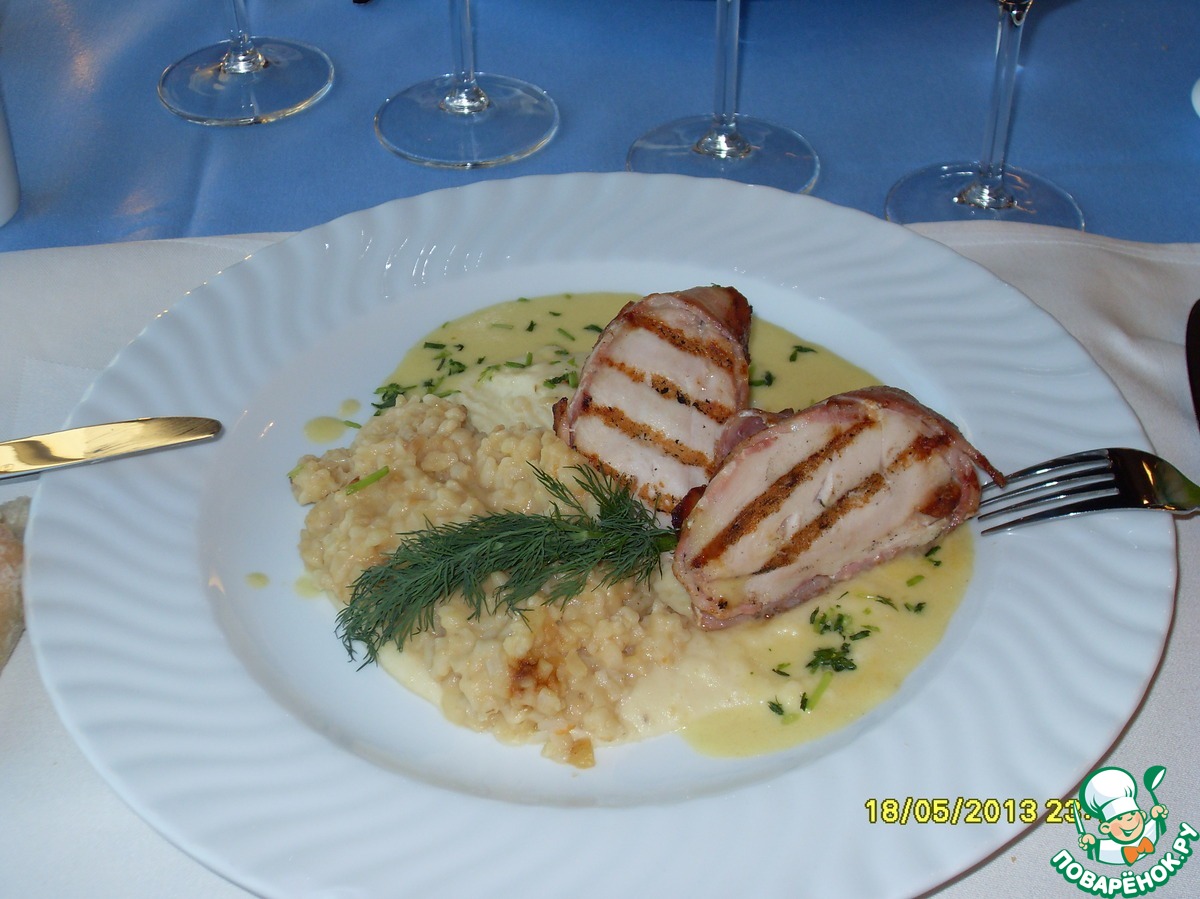 Свинина с ризотто. Это заказала я. "Ризотто" оказалось из (?!!) перловки. Так что это "Перлотто".