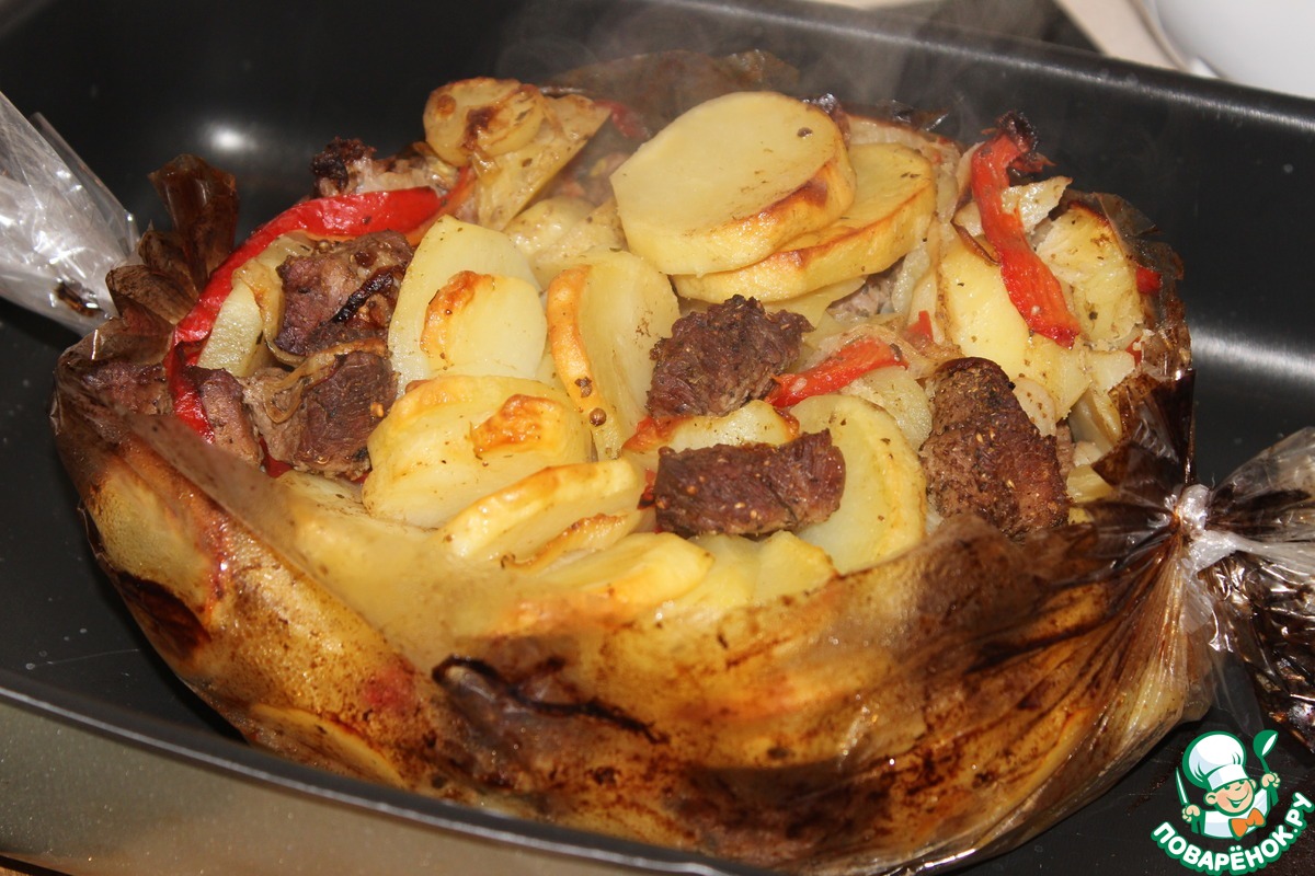«Картофель, запеченный с мясом в рукаве»