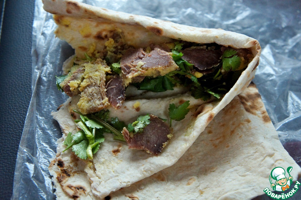 Когда возникает необходимость, мясо достают, добавляют к нему свежую зелень и заворачивают его в свежий лаваш. Это необыкновенно вкусно!!! Мясо просто тает во рту... его и жевать-то практически не надо, настолько оно нежное. Невероятно вкусно, просто "ум отъешь"!!!
