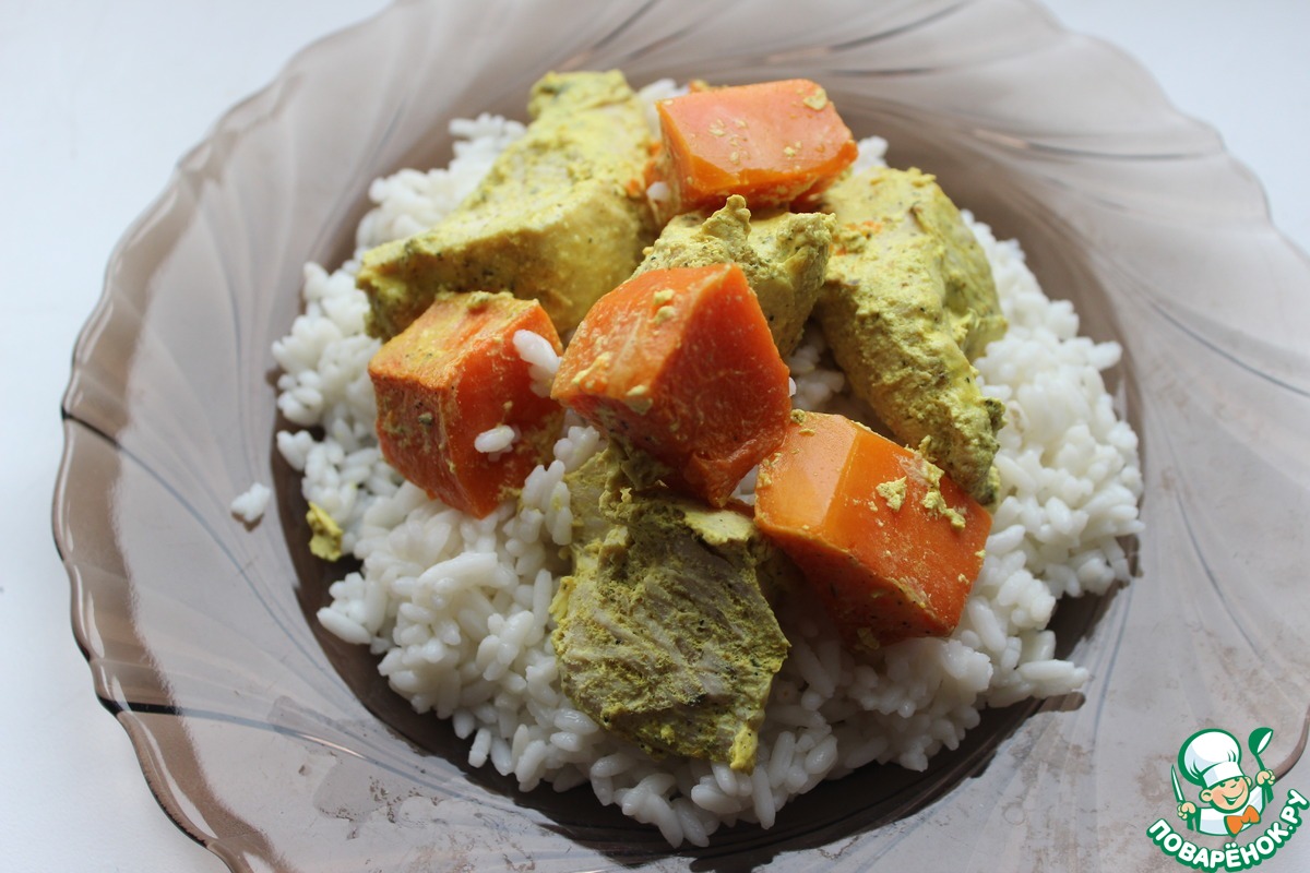 «Индейка, запеченная с тыквой в сметанном соусе»