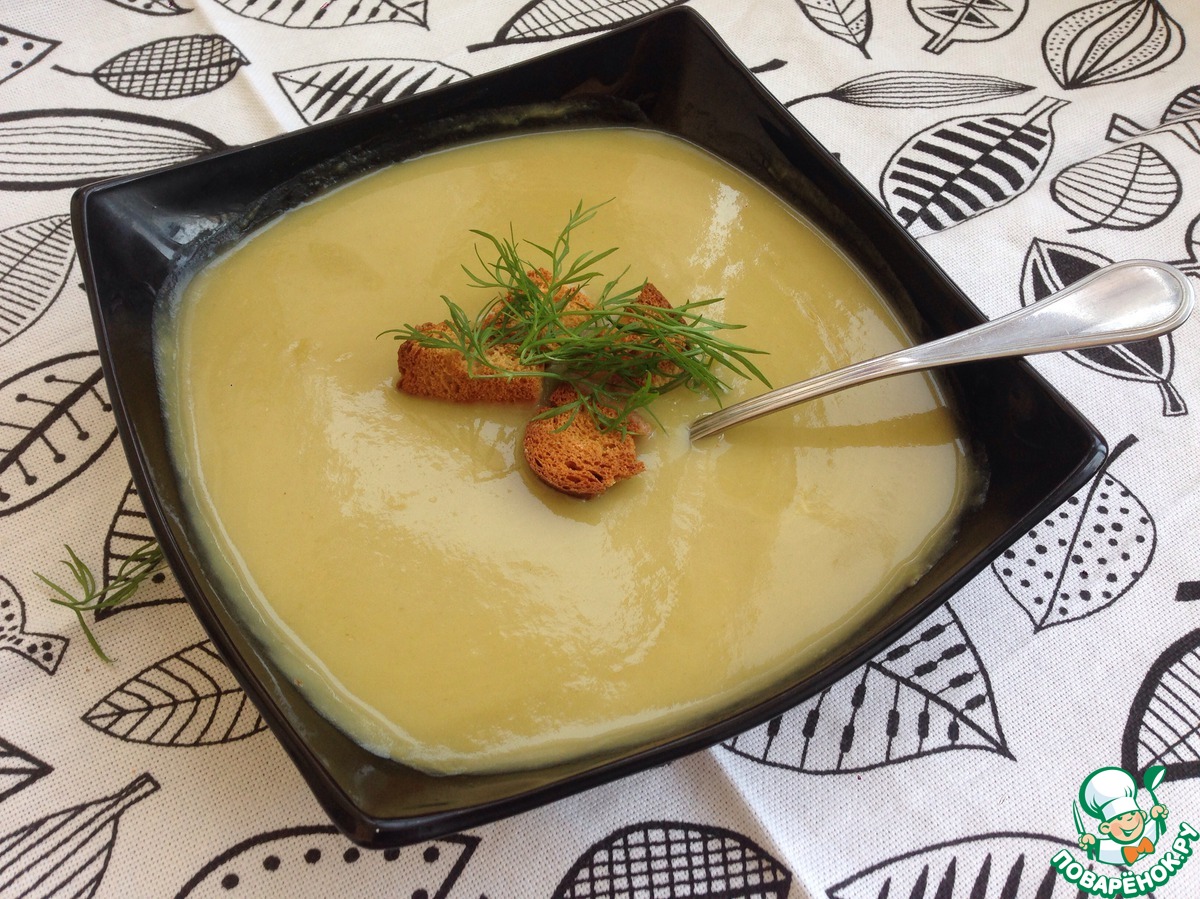 «Овощной суп-пюре с чесночными гренками»