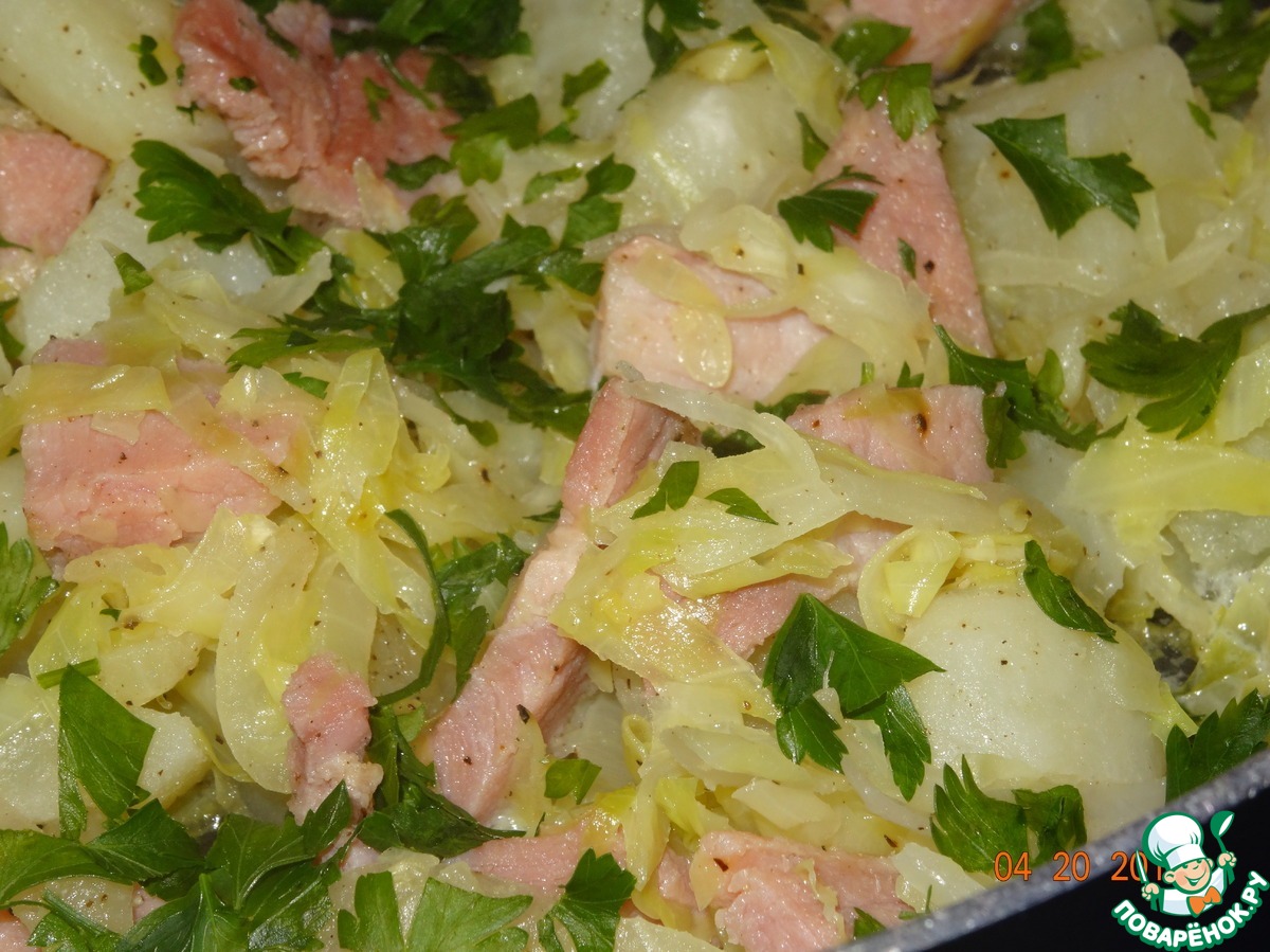 «Капустно-картофельная сковорода с ветчиной»