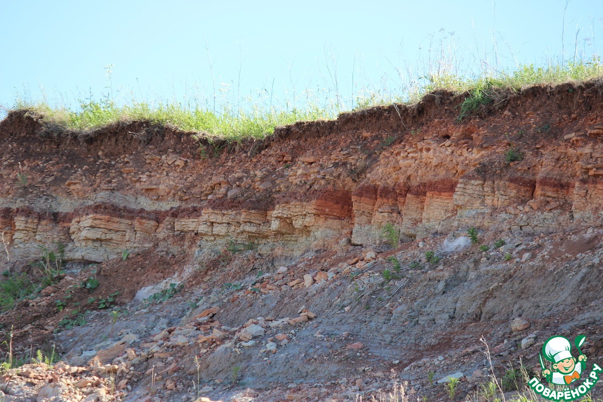 Прослеживаются слои - глины, известняк...