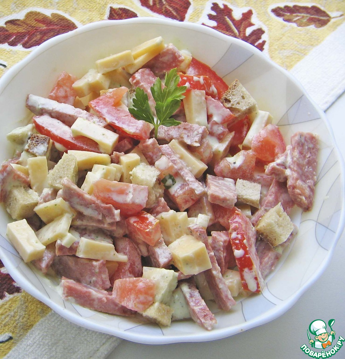 «Салат из сыра и полукопченой колбасы "Хрустящий"»
