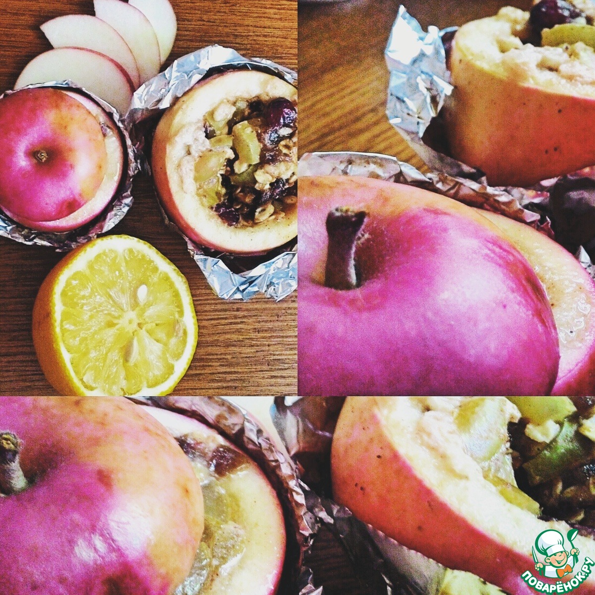 «Запеченные яблочки с медом, корицей, финиками, виноградом и овсянушкой)»
