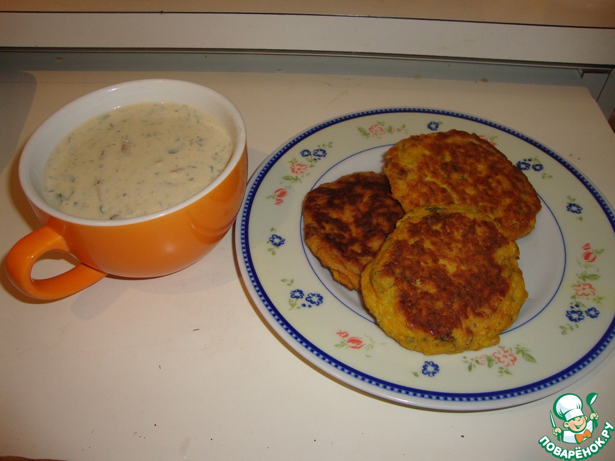 «Тыквенные оладьи с пармезаном и соус с грибами по-волынски»