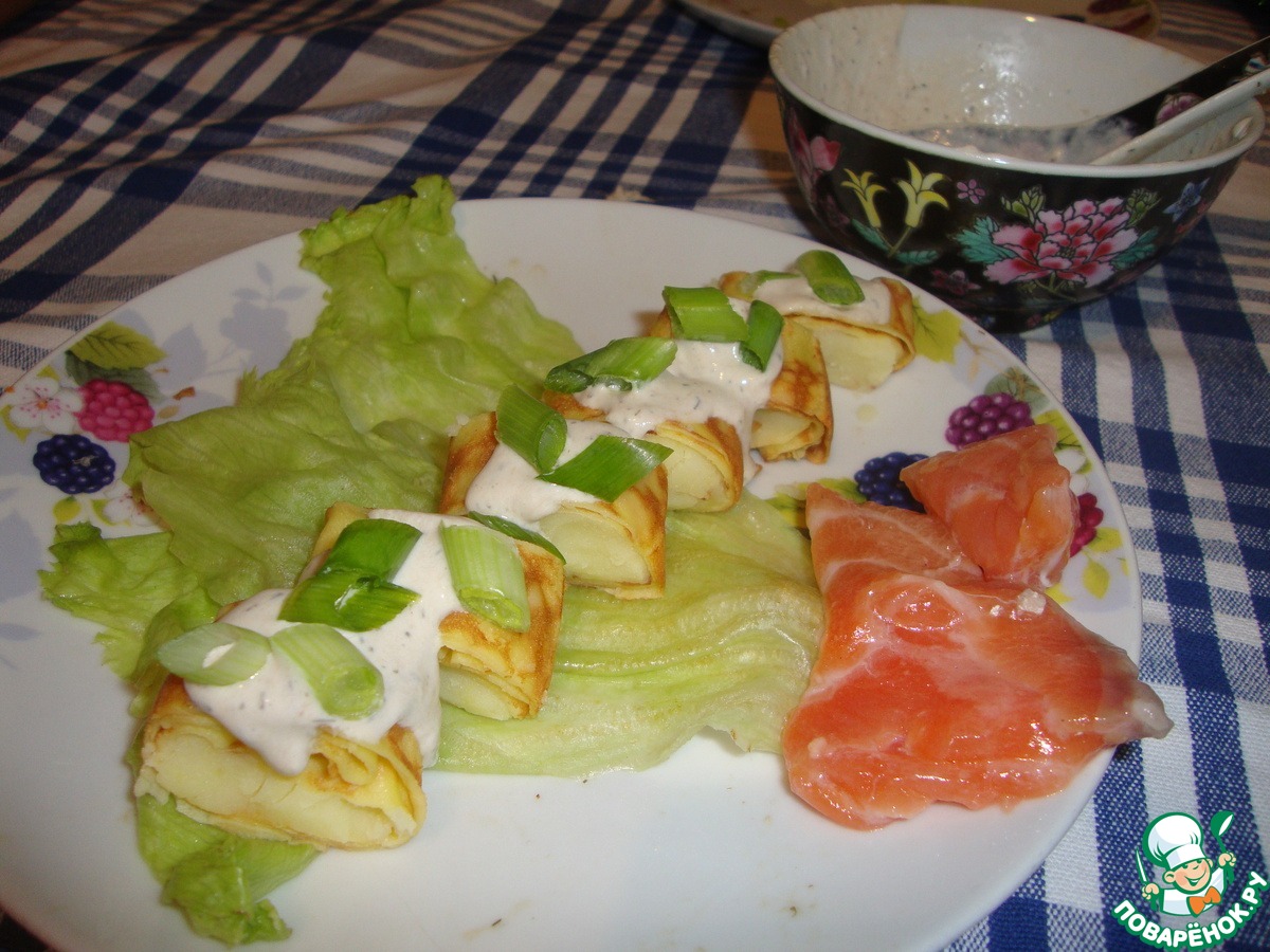 «Блинчики с картошкой и сметанно-селедочным соусом»