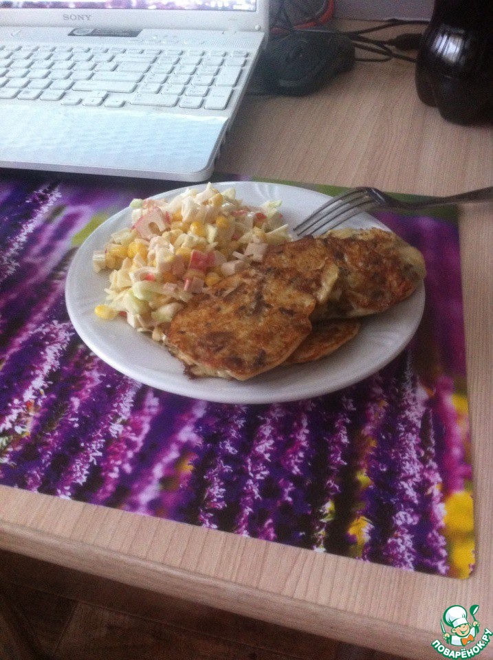 «Деруны с крабовым салатом»