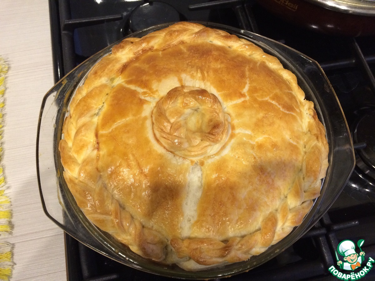«Пирог с курицей и грибами в сливочном соусе из слоеного теста»