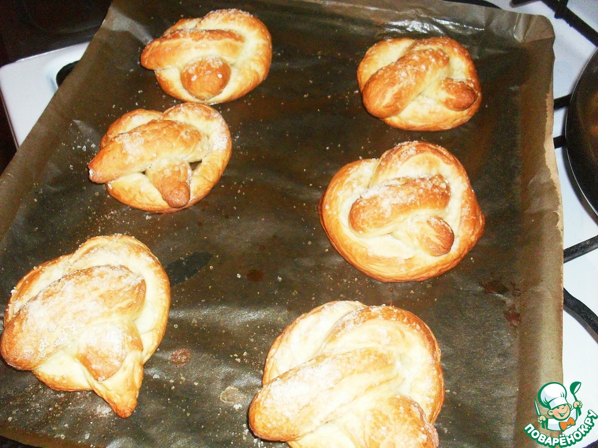 Старалась...Что самое обидное,пока писала вам о том,что приготовила их,надеялась другие фотки сделать.Тут заходит дочка и спрашивает:"Мам,а ты пробовала кренделя?" Я говорю:"Ну один попробовала".Она ушла.Ну сами,понимаете,когда попадаешь за комп,а тем более на "Поваренок",то время летит не заметно.Выхожу на кухню,ваза пустая...Ору:"Девченки,где кренделя?"Ответ:"А мы съели!".Вот и сейчас,малехо застряла здесь,а там салат готовлю "Сельдь с грибами"Новогодний каприз".Боюсь,как бы селедка с грибами порознь не "ушли"(поджарка остывает)