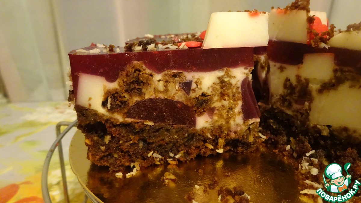 «Постный кокосово-малиновый торт в разрезе»