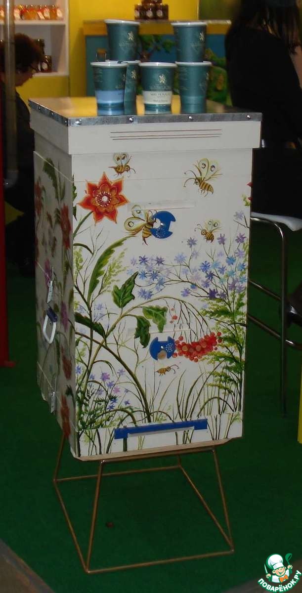 У нас на точках, где мы кочуем тоже есть у пасечников улья с рисунками. Самый веселый с кроликом и пришедшим в гости Винни Пухом и Пятачком.