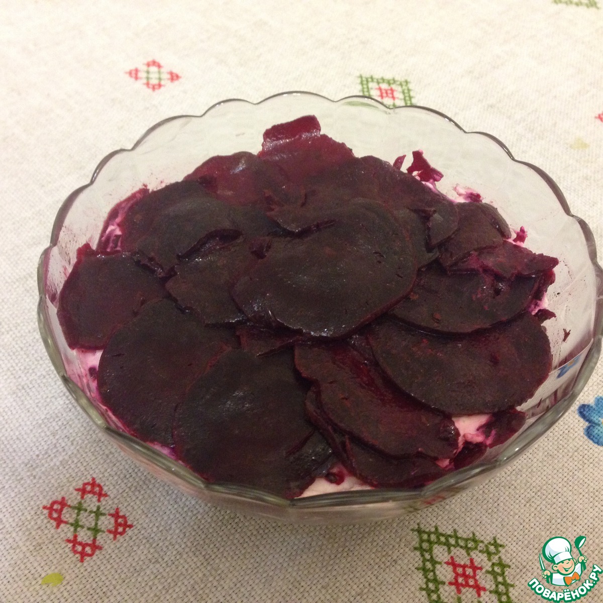Знакомый салат из свёклы с чесноком и творогом в необычном оформлении
