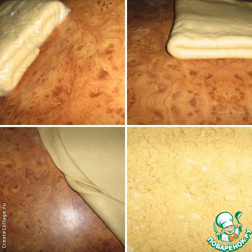 Я имела ввиду: когда Вы приготовите тесто, раскатав 8-й раз и легко сложив в несколько слоев, то можете сразу печь кондитерские изделия из него, а можете положить в пакет и отправить в морозилку. В будущем, достаточно на ночь или на пару часов достать из морозилки тесто, разморозить, раскатывать, формировать задуманное блюдо - и выпекать. То есть, финальное замораживание - это как способ хранения.))) Между складыванием не замораживать.Сложить, а потом опять раскатать в тонкий пласт. И так не менее 6 - 8 раз.