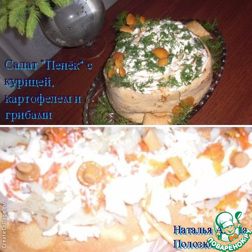 «Салат с курицей, грибами и сыром "Пенёк"»