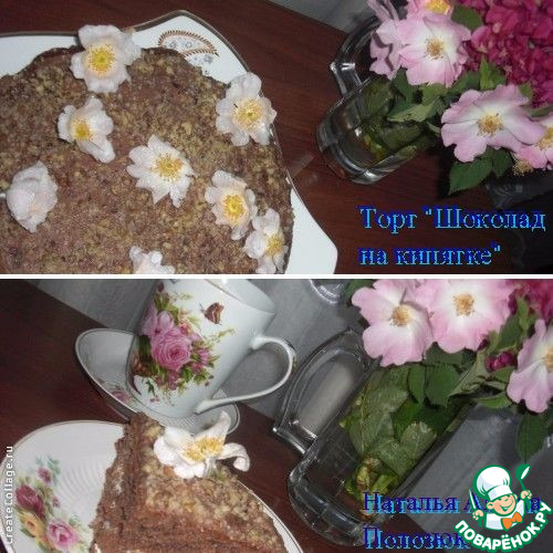 «Торт "Шоколад на кипятке" с засахаренными цветами шиповника»