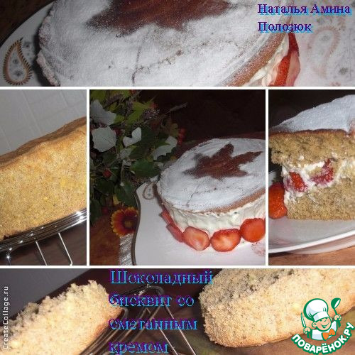 «Шоколадный бисквит со сметанным кремом и свежей клубникой»
