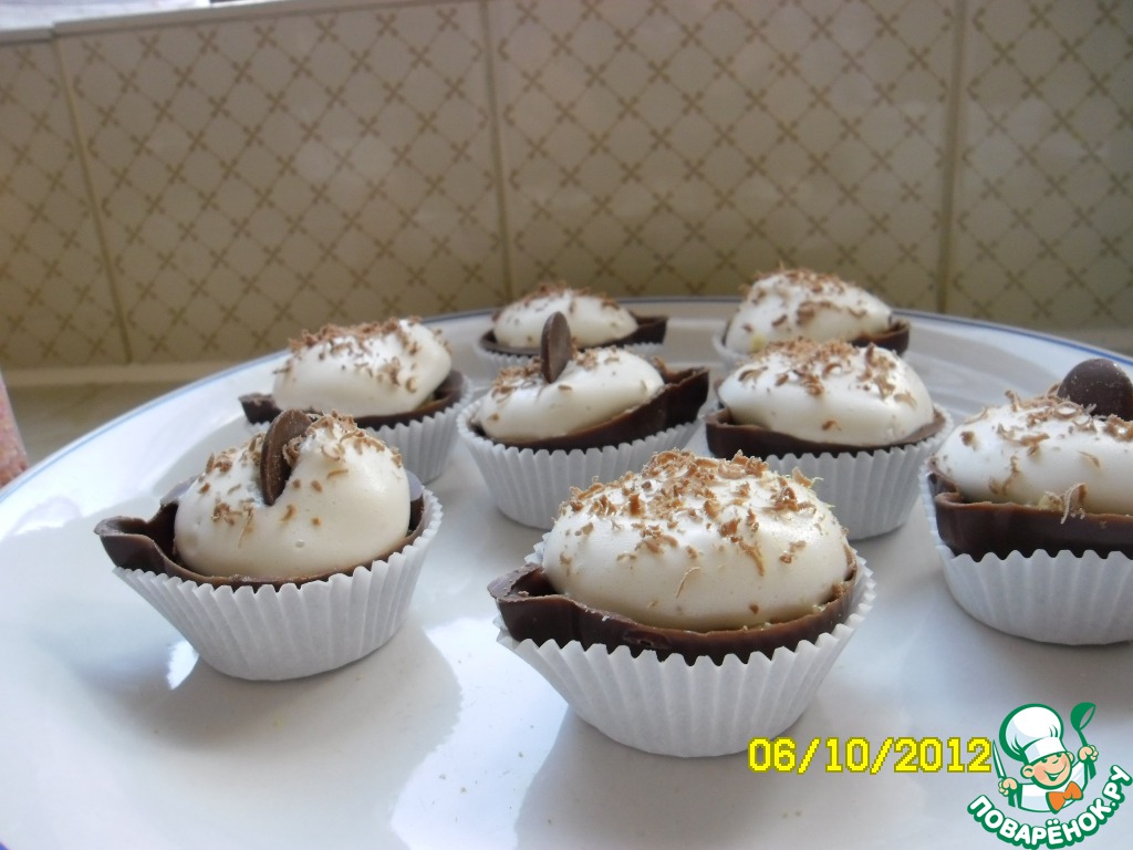 Это была идея моей внучки. Она попросила сделать чашки и наполнить их разными наполнителями. мы назвали этот десерт ШОКОЛАД- КАПУЧИНО
