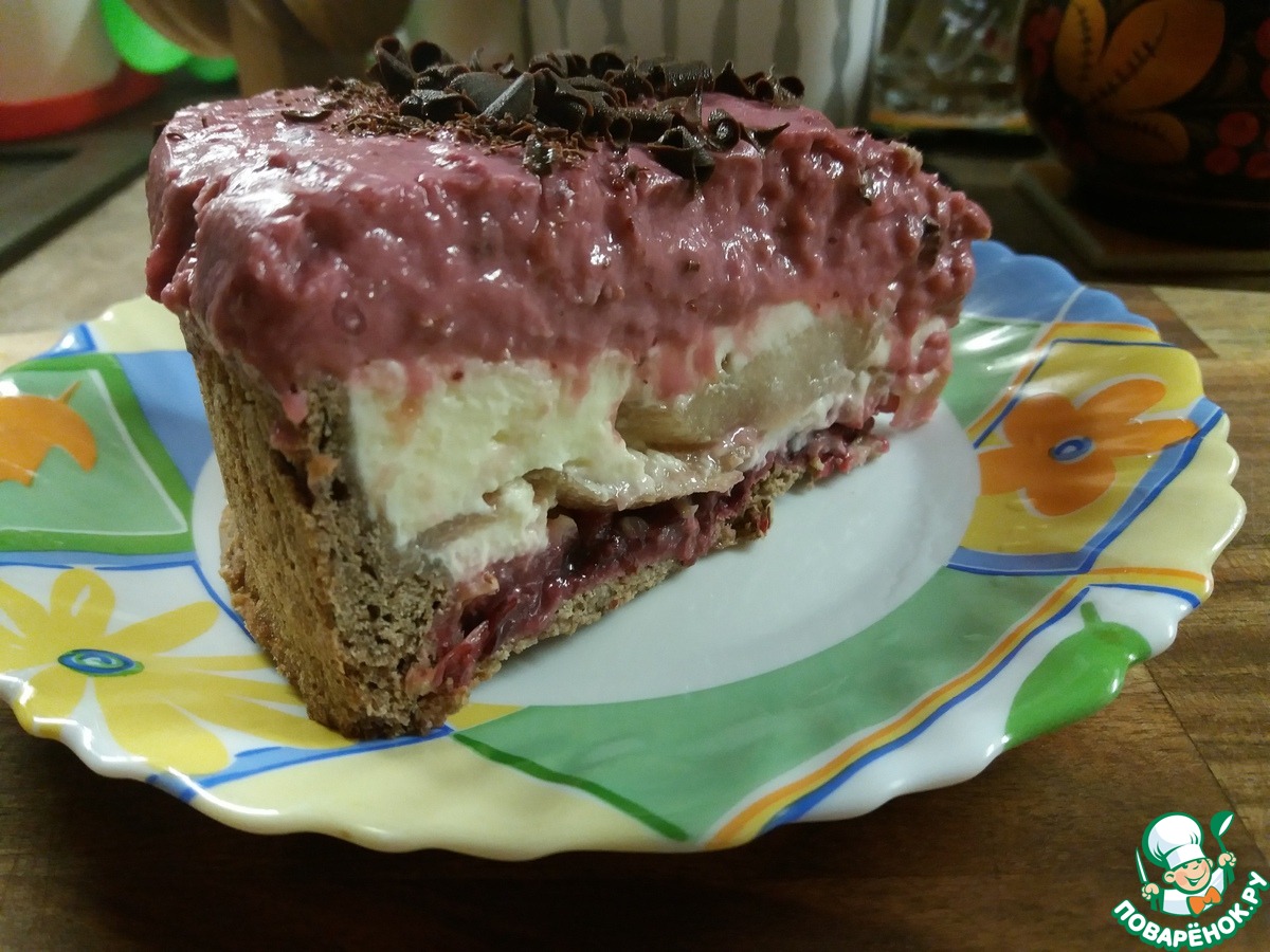 «Торт с грушей в сливочной заливке с брусничным пудингом.»