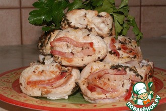 Грудка куриная Бекон Лимон Соевый соус Приправа Специи Соль Перец черный Перец белый Чеснок Вода Масло растительное