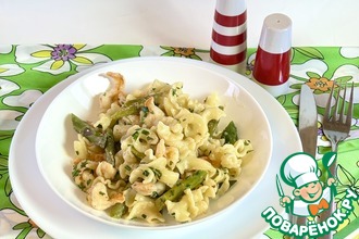 Макароны с грибами? Или, наоборот, надо? Может быть, кто-то скажет, что несколько нетрадиционный подход? Может и так. Но, знаете, получилось вкусно и нам понравилось.