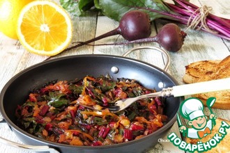 Блюда из мангольда, как правило, очень просты. Его используют в салатах, первых блюдах, закусках, соусах к пасте, как начинку для пирогов и пирожков, в омлетах и запеканках. Ещё листья можно замораживать и консервировать. Сегодня мы приготовим тёплый салат из мангольда с апельсином. Необычно, но очень вкусно!