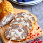 Для моих мужчин праздничный стол в первую очередь -это мясо и рыба- какие-нибудь изыски, с которыми в обычное время возиться лень. Такой вот рулет, проверенный временем-как раз из этой серии. Очень и очень вкусный. Режется тоненько и улетает со стола одним из первых! Пикантный, островатый, ароматный - просто прелесть! Делается просто, самое трудное - впихнуть его в бинт. Ну-повозиться чуточку, а дальше - красота!